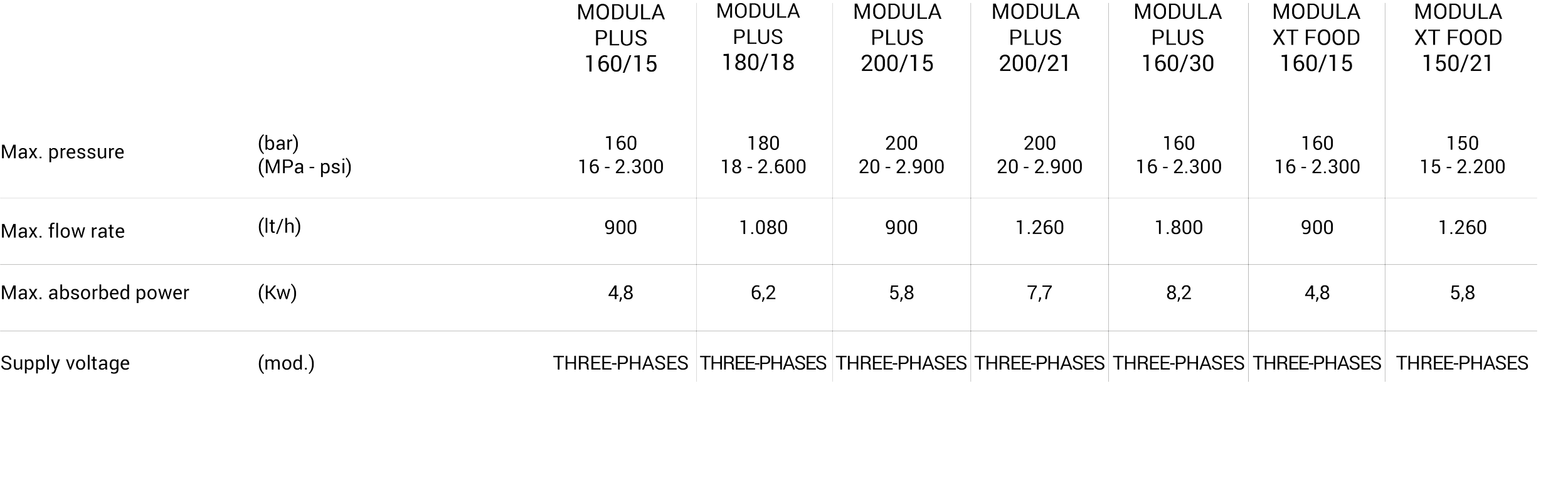 MODULA PLUS / XT FOOD - PROFESSIONAL STATIONARY COLD WA TER HIGH PRESSURE CLEANERS