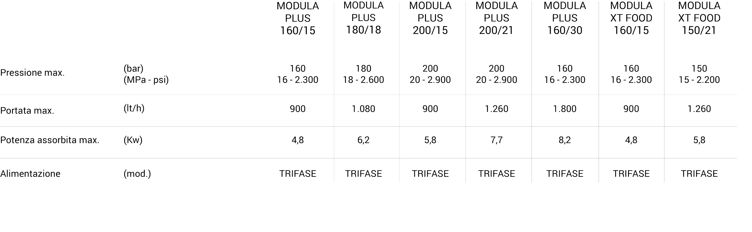 MODULA PLUS/XT FOOD - IDROPULITRICI STAZIONARIE PROFESSIONALI AD ACQUA FREDDA